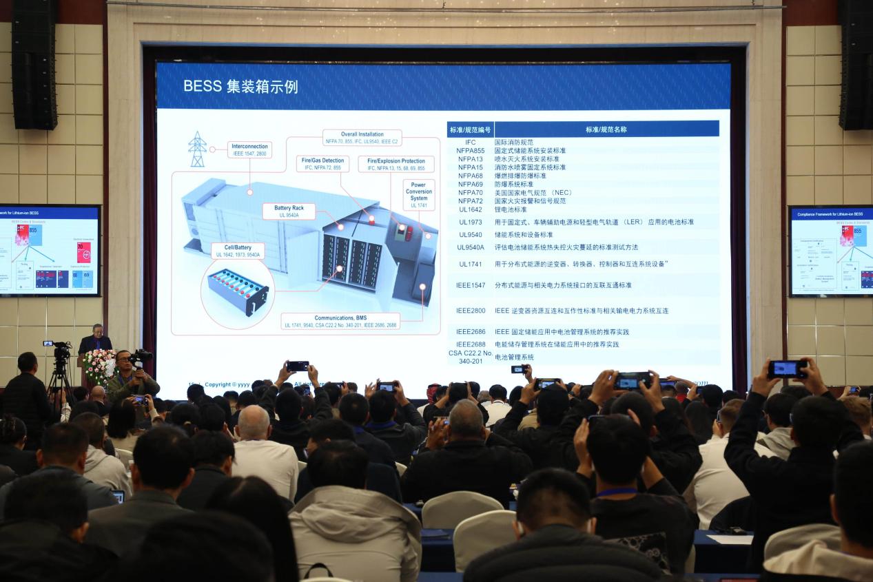 论坛围绕储能项目全球合规性展开深入交流。来自美国、澳大利亚、意大利等国的专家,就2026版NFPA 855标准新变化、UL 9540A大规模火灾测试、锂离子储能系统安全策略、欧洲环保要求及各地电池储能系统准入规范等议题进行解读,结合案例阐释合规设计如何保障系统全生命周期安全,为企业提供了具有全球视野的实践参考。